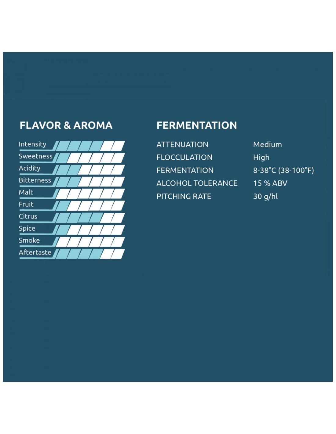 Cette souche provient de Stig Seljeset, à Hornindal, en Norvège. Sa plage de fermentation s’étend de 8°C à 38°C, avec une accélération du processus à mesure que la température augmente. À 38°C, la fermentation peut être complétée en 48 heures seulement. À des températures plus basses, le processus prendra plus de temps. Pour une fermentation optimale, il est conseillé d’ajouter des nutriments pour levure.
