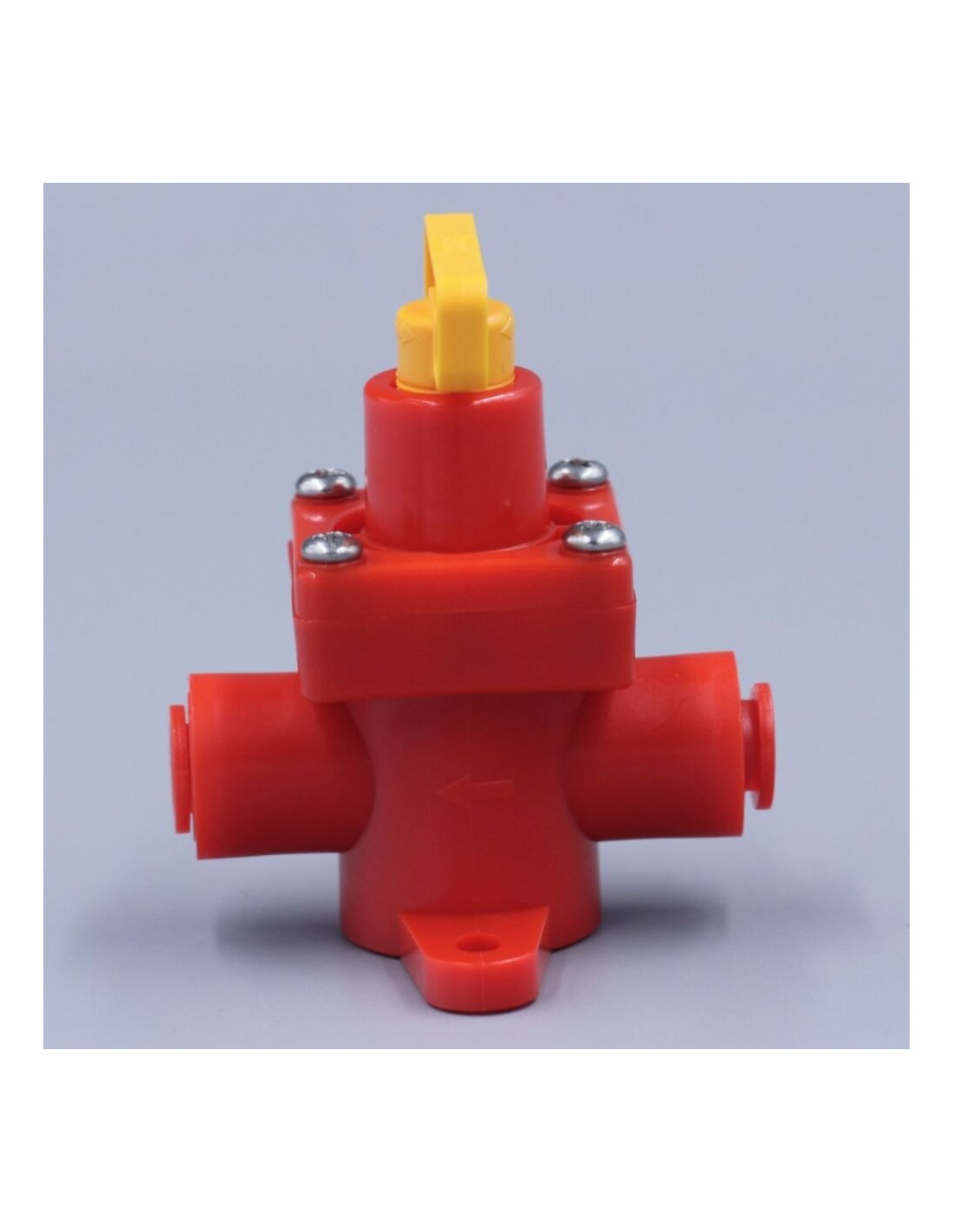 Utilisez le bouton de réglage jaune pour contrôler la pression sortant du récipient sous pression. Dans le sens des aiguilles d’une montre, la pression est plus élevée et dans le sens inverse des aiguilles d’une montre, la pression est inférieure.
