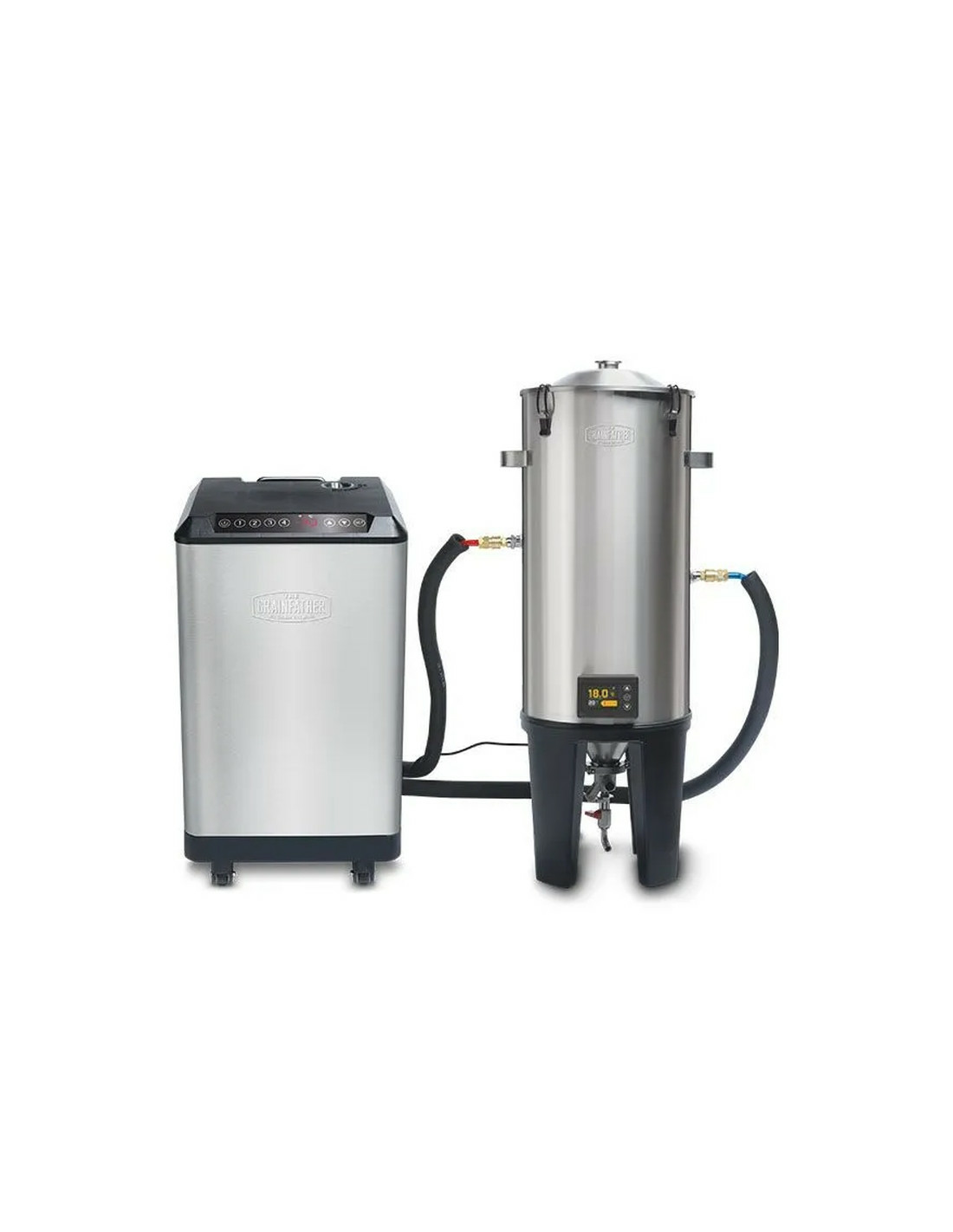 Avec l’ajout du refroidisseur de glycol, votre système fonctionne au niveau ultime et vous êtes même en mesure de faire un crash froid et une bière blonde jusqu’à 4 ° C (39 ° F). Le refroidisseur de glycol se connecte à un manchon de refroidissement caché, situé entre les deux parois en acier inoxydable du fermenteur conique. La température souhaitée est sélectionnée dans le contrôleur de température numérique du fermenteur conique, le liquide se déplace ensuite à travers ce manchon, refroidissant l’acier inoxydable qui à son tour refroidit la bière dans le fermenteur. Le manchon de refroidissement n’entre jamais en contact avec la bière, est complètement dissimulé et ne nécessite ni nettoyage ni désinfection – une véritable innovation pour un fermenteur de cette envergure.
