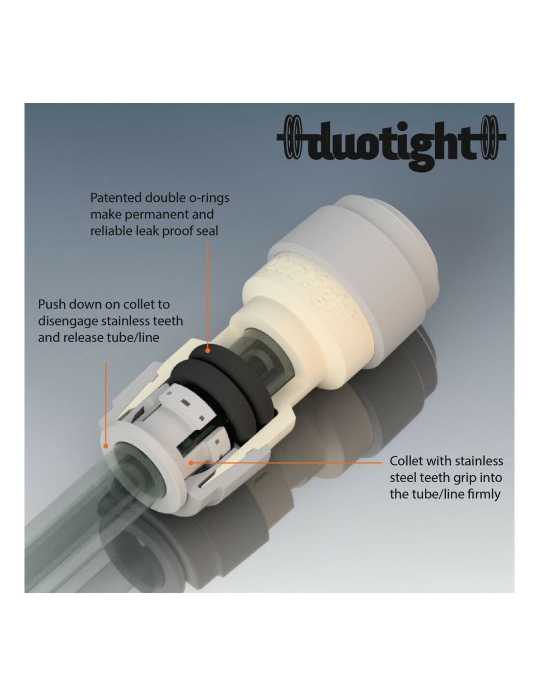 Vous recherchez des raccords enfichables de haute qualité qui scellent hermétiquement ? Duotight sont les raccords instantanés avec une capacité d’étanchéité supérieure grâce à la conception d’étanchéité à double joint torique.