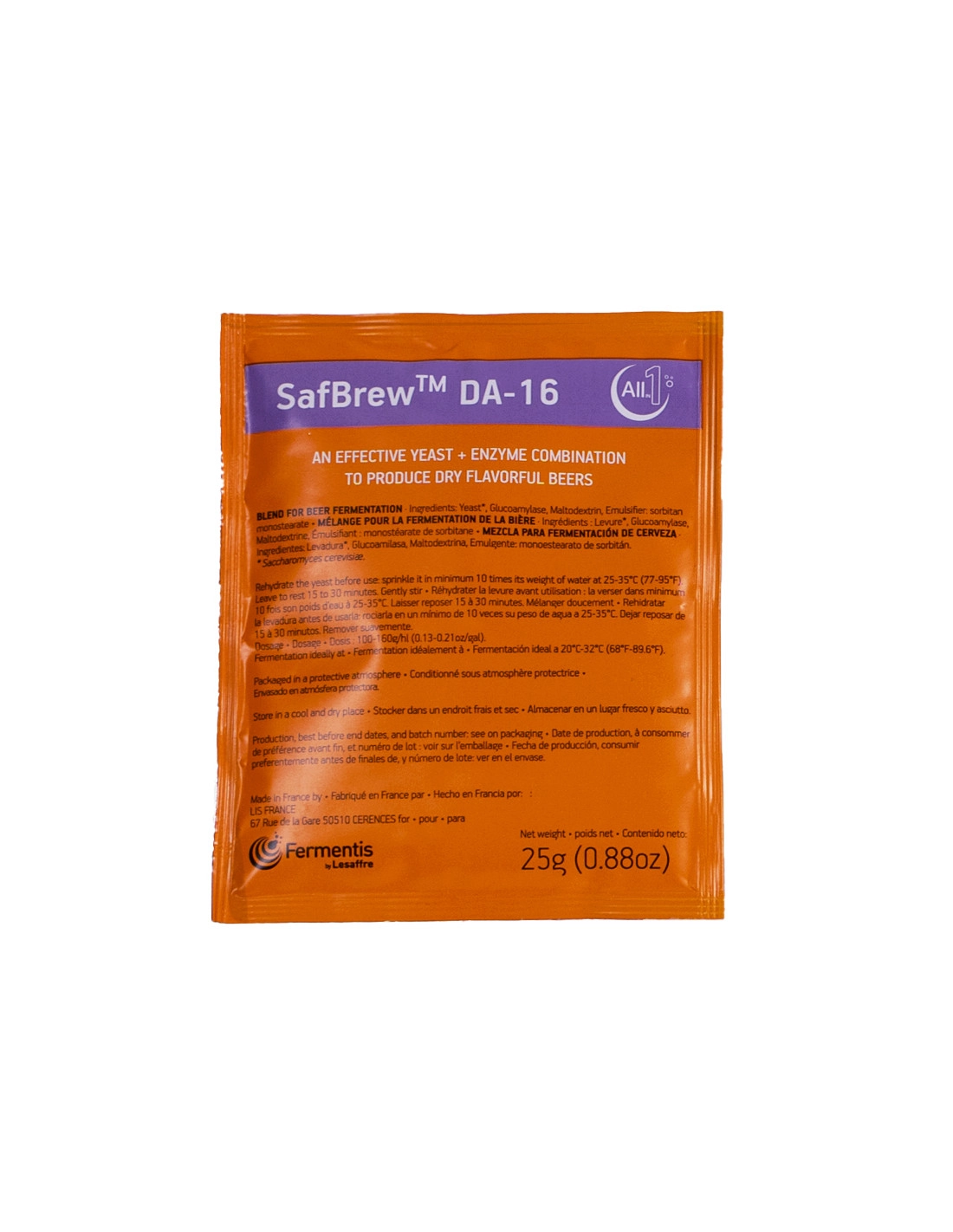 SafBrew™ DA-16 est une solution puissante (composée de levure sèche active et d’enzymes) pour la production de bières très sèches et savoureuses, particulièrement fruitées et houblonnées comme les Brut IPA.