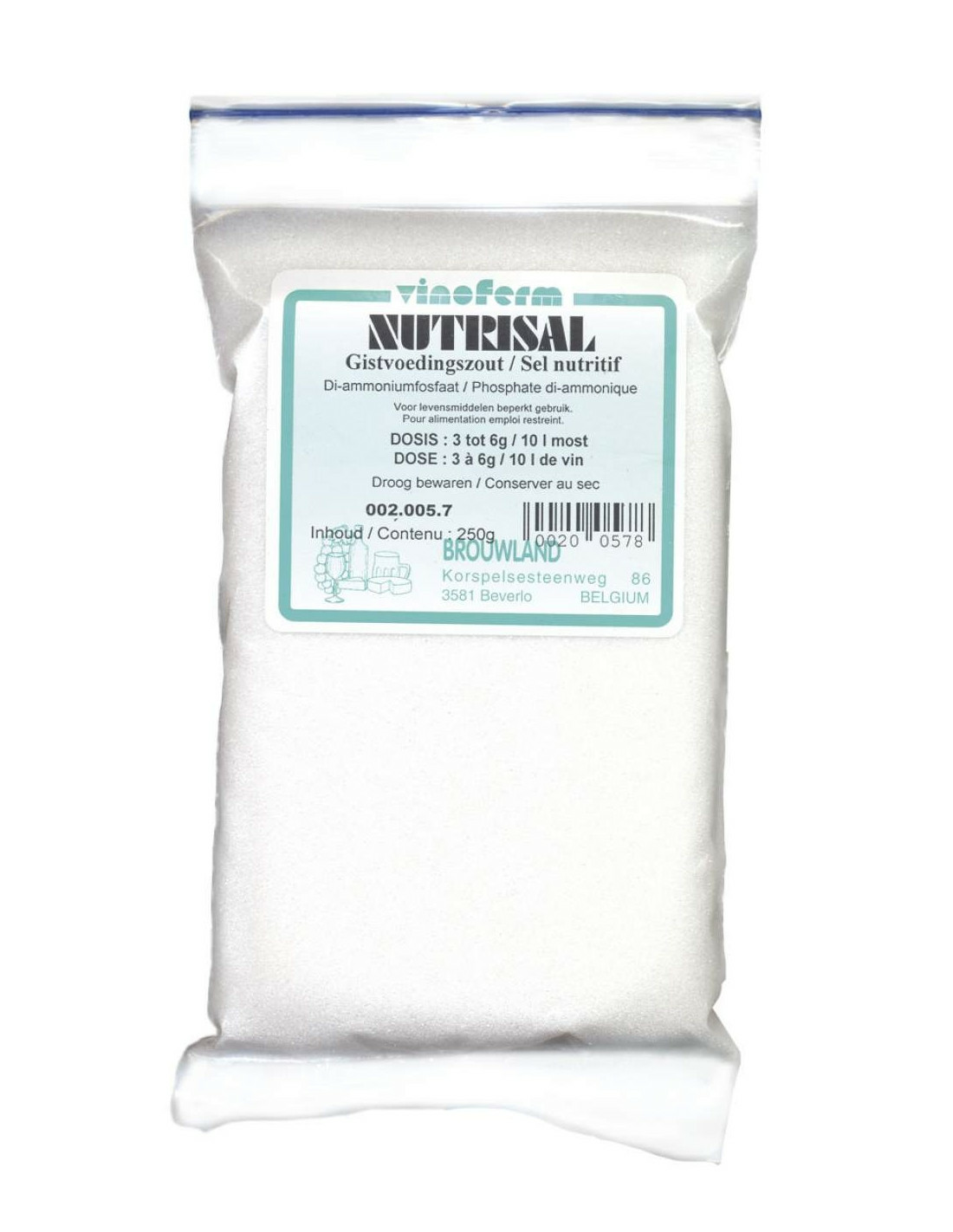 Poudre. Contient de l´ammonium diphosphate. Conseillé pour une bonne fermentation des vins de fruits, légumes et fleurs.
