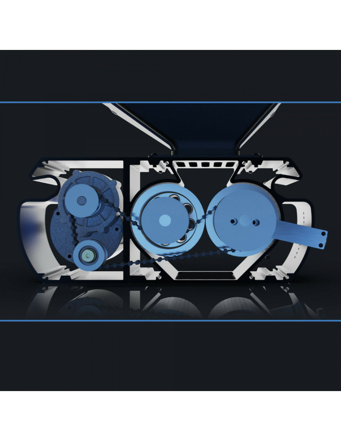 En outre, la structure en deux parties isole le moteur et les rouleaux dans deux compartiments séparés, ce qui empêche la poussière et les impuretés de s’accumuler dans le moteur et la transmission. Tous les rouleaux et poulies rotatives sont dotés de leurs propres roulements à billes, totalement étanches, afin de garantir une faible résistance et une longue durée de vie.